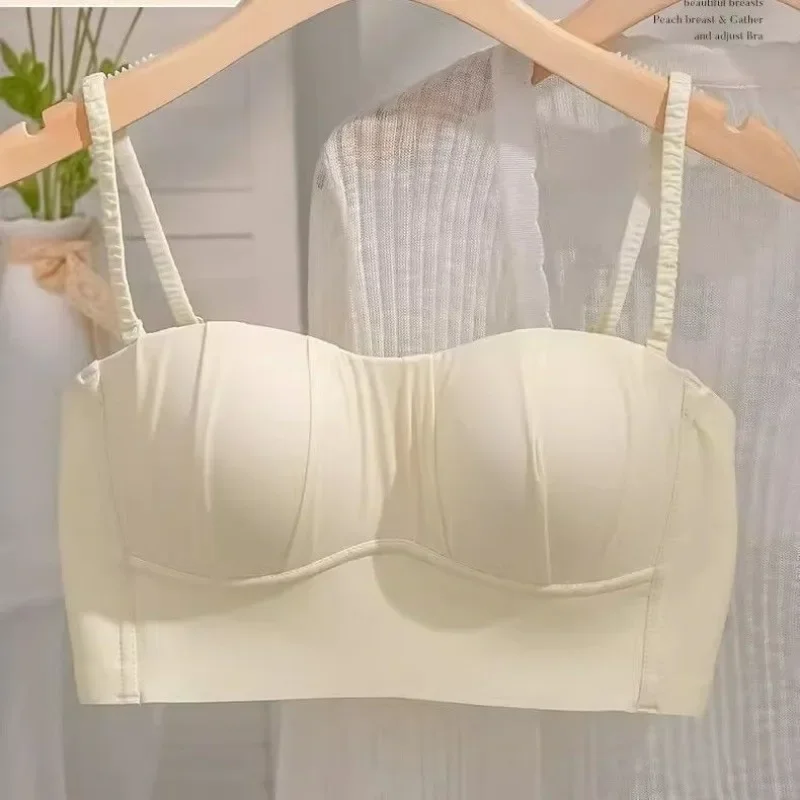 2023Q弹美背无肩带内衣女 透气防走光聚拢上托薄杯抹胸文胸罩外贸