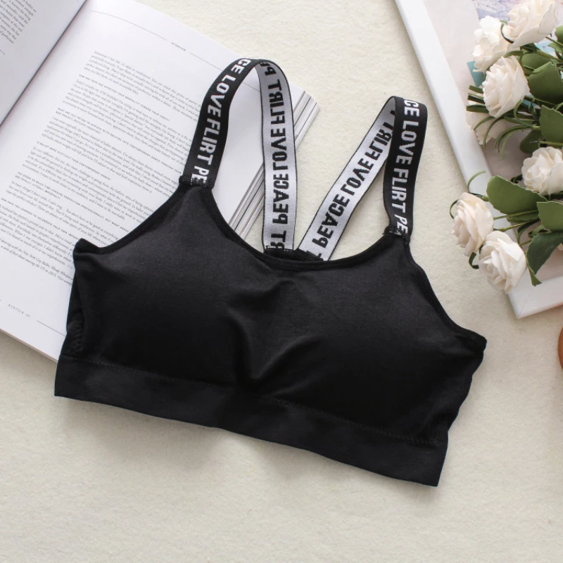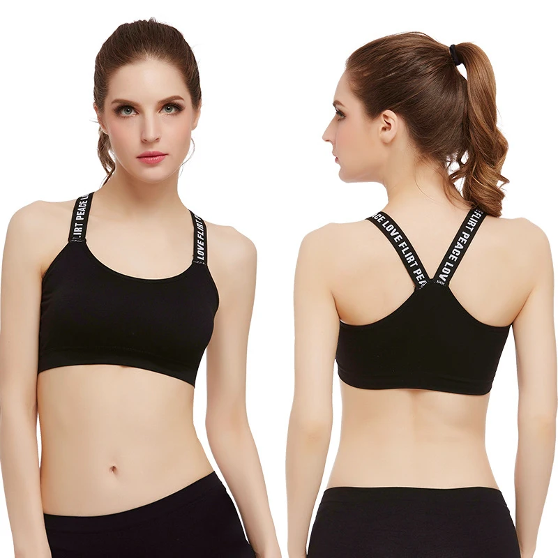 Yoga shockproof running bra without rim underwear beauty back English letter shoulder strap tube top wrapped chest